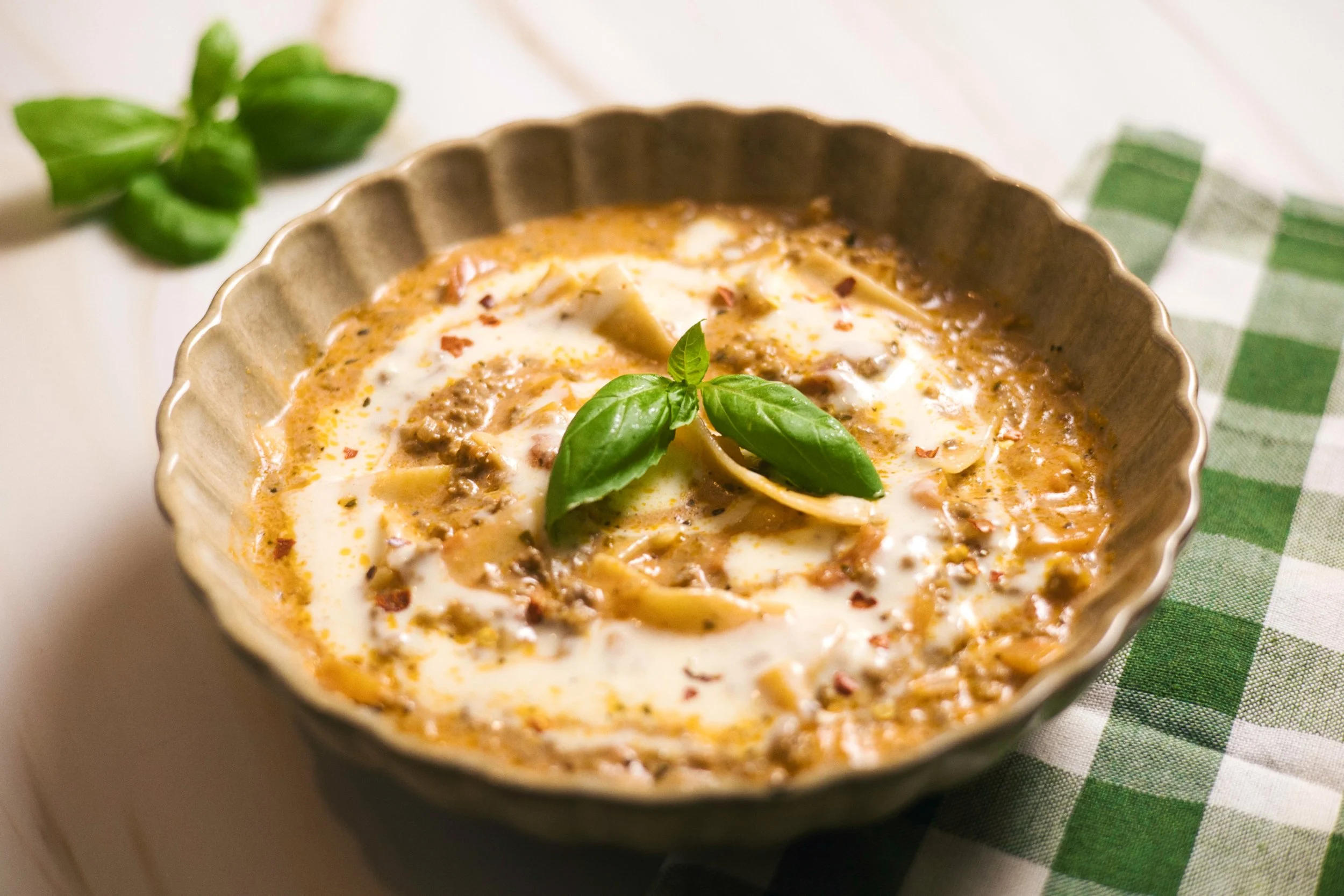 Tässä lasagnekeitossa on kaikki lasagnen ihanat maut ilman uunia! Jauheliha, tomaattinen liemi ja silkkinen Mornay-kastike yhdistyvät kermaiseksi ja täyteläiseksi keitoksi – täydellinen lohturuoka arkeen tai viikonloppuun.